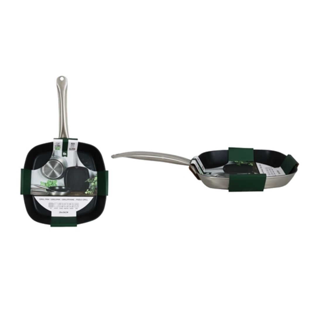 Professional-grade griddle pan with raised lines for perfect sear marks. Even heat distribution for consistent cooking. Suitable for all stovetops including induction.